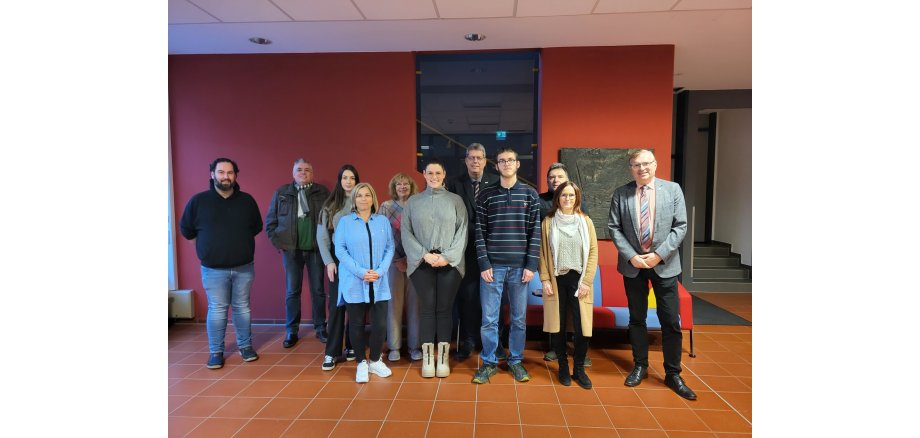 V. l.: Jörg Mang, Uwe Wiesen, Alessia Zinßmeister, Lena Grünwald-Kretschmer, Erste Beigeordnete Eugenie Dengel, Vivien Wünschel, Hans Feld, Christoph Merlin Kühn, Beigeordneter Rainer Degen, Sabine Alt und Michael Cullmann